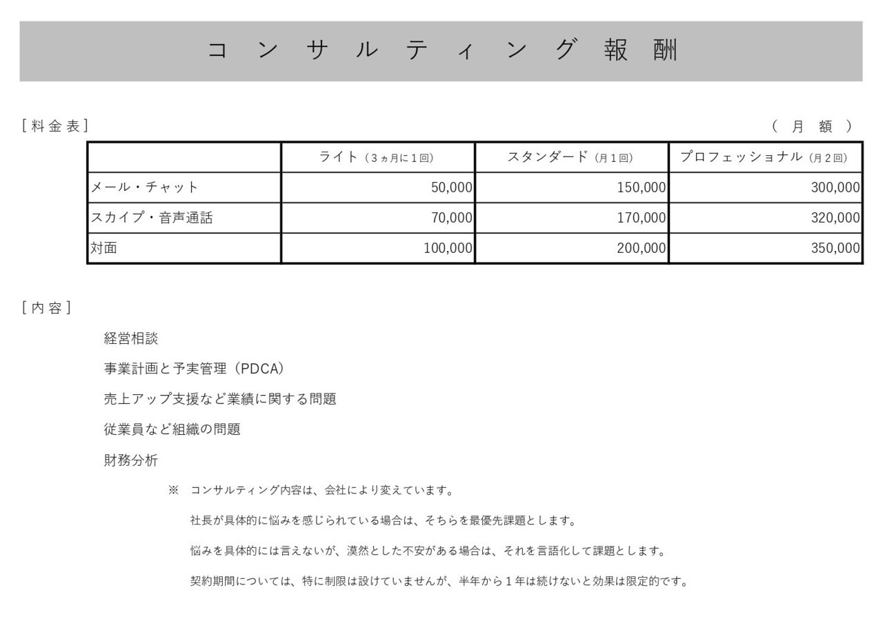 コンサルティング報酬は、30万円から100万円まで多岐に渡ります。